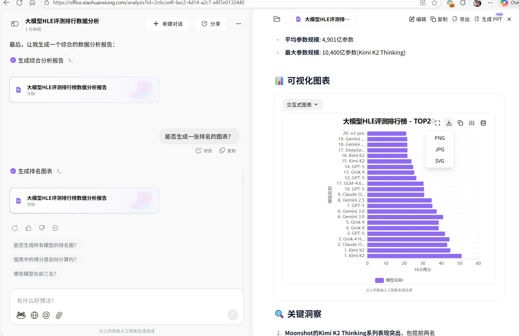 之后生成的报告草稿具有非常明显的“可直接使用属性”,也可以直接导出报告,包括PPT甚至是HTML网页等。对于日常需要写“调研、复盘、方案、总结”的人来说,这种自然语言交互和直接搜索数据生成报告的方式十分友好。