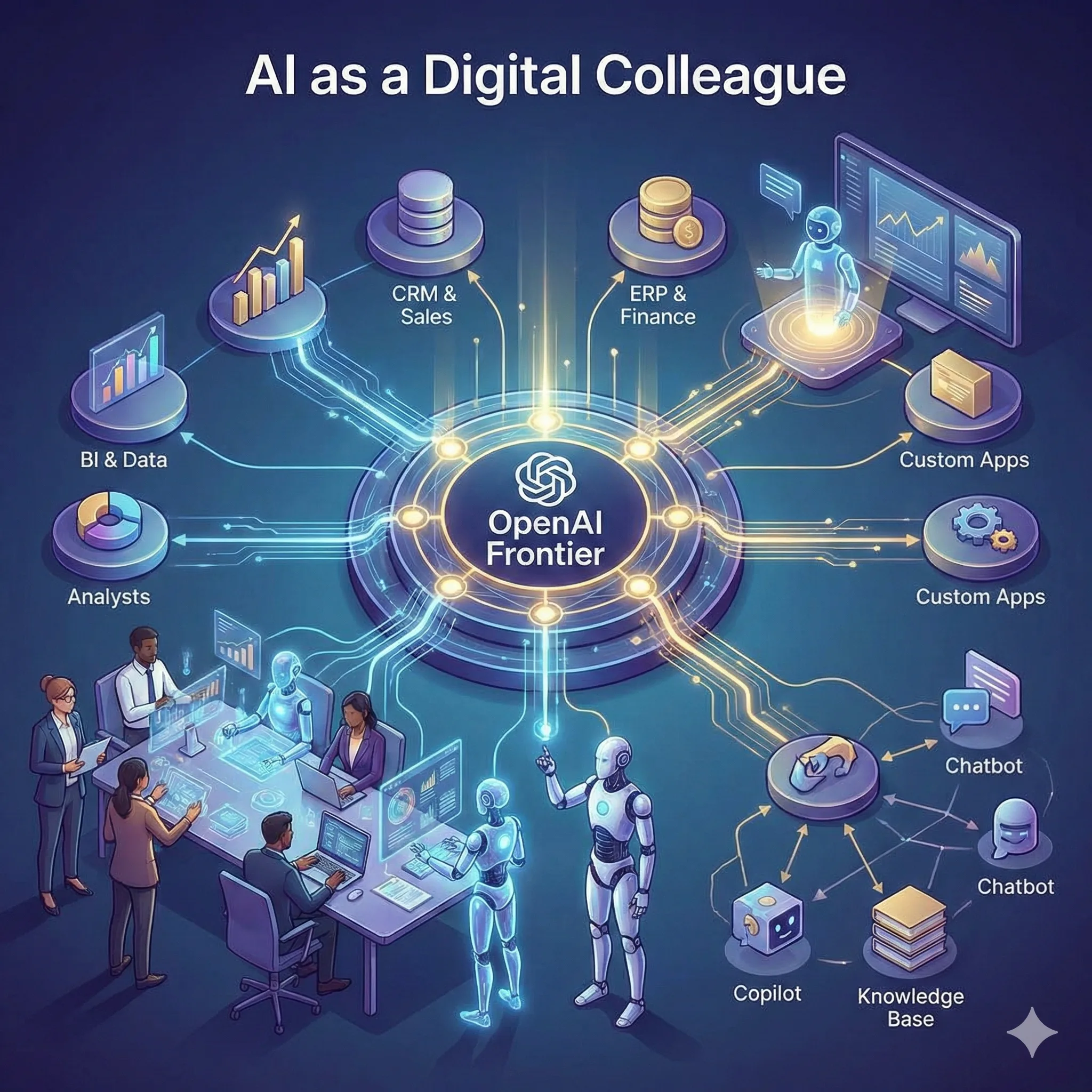 Frontier 的核心理念是让 AI 像人类员工一样融入企业生态。它不是孤立的工具,而是能连接各种业务系统,比如数据库、CRM、票务工具和内部应用。通过创建一个“共享业务上下文”的语义层,AI 代理能处理信息流、做出决策,并产生实际结果。这意味着,企业不再需要为 AI 单独构建新系统,一切都能无缝集成。