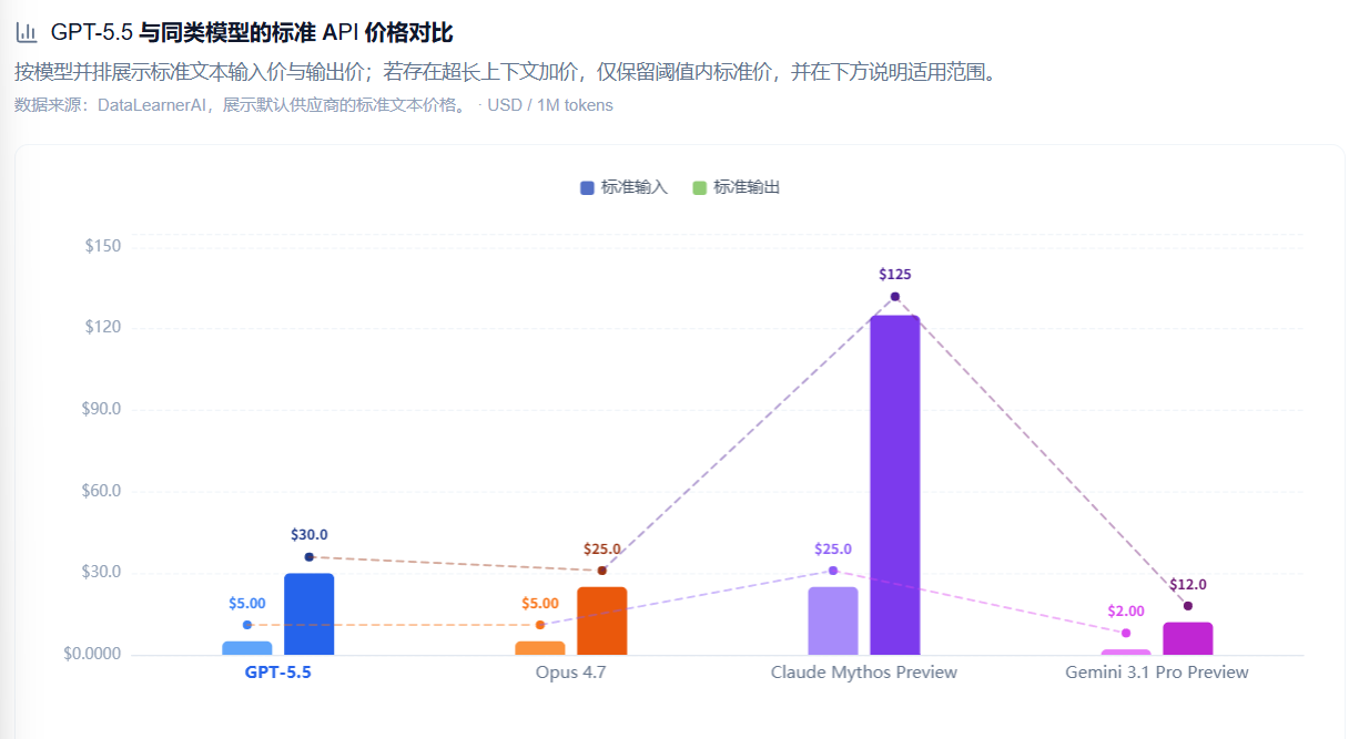 定价上,API 端输入 $5 / 输出 $30(每百万 token),是 GPT-5.4($2.50/$15)的整整两倍。但结合 token 效率的提升,实际综合成本增幅会低于这个倍数,高吞吐量场景还是要具体测一下再做判断。